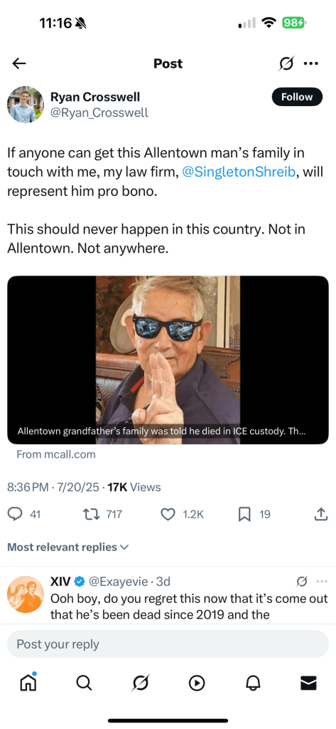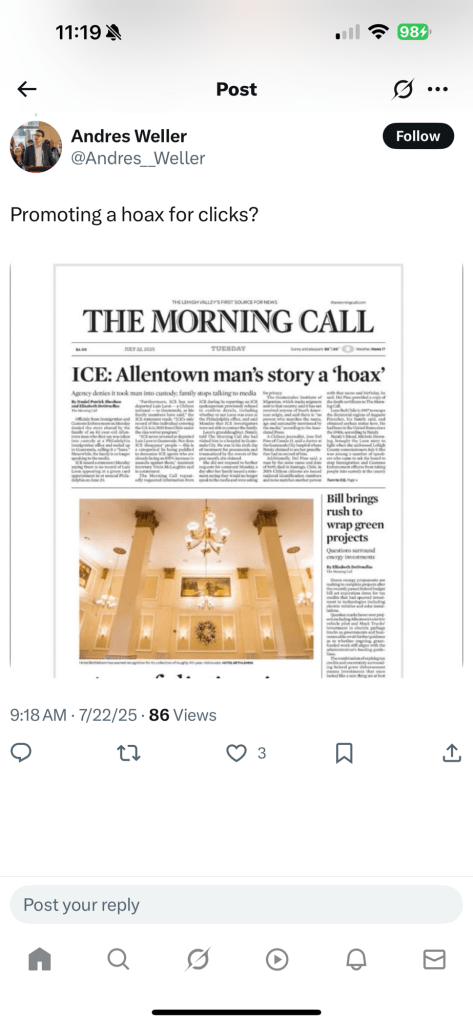 Can this firm do the work? I’m sure they can. But if you already are being hit for being a carpetbagger in the Lehigh Valley, maybe hunting for business for a firm in California isn’t the best look. Like I’m 2,000% sure there is an immigration attorney in the Lehigh Valley.