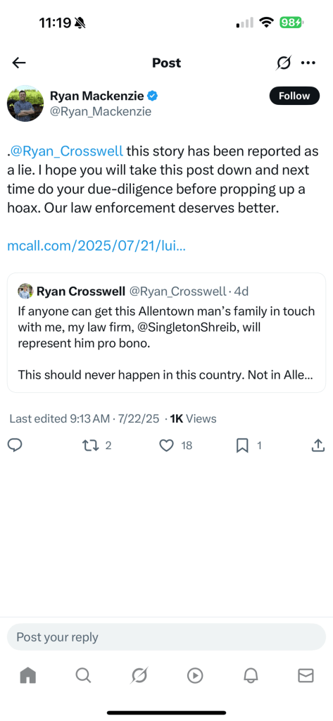 Stiffing old ladies isn’t a good look. Especially when it fits with a pattern of being bad with money. Stiffing a family member makes it look like maybe the money problems aren’t just a case of tough times, but maybe something worse. It’s hard to tell, but I will bet bourbons to beers that Ryan Mackenzie and the Republican Party will take information like this and absolutely slime this guy if he’s nominated. By the end he’ll be the symbol of elder abuse and financial misconduct in America, not the next Congressman.