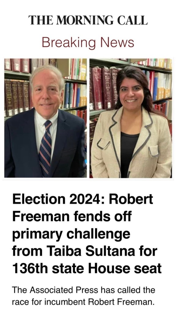 Last year in Easton, State Representative Bob Freeman beat City Councilwoman Taiba Sultana by such a wide margin that if it were any worse, he’d be winning by numbers on par with Saddam Hussein, Vladimir Putin, and other famous autocratic leaders. For full disclosure, I did work on his campaign, but also, I am not why he won. Bob won by so much because virtually everyone in Easton likes him, and for that matter in the other communities he represents. He’s been effective at legislating, and more importantly he has not one time in his career embarrassed his community. He’s a decent human being in a time when politics lack that.