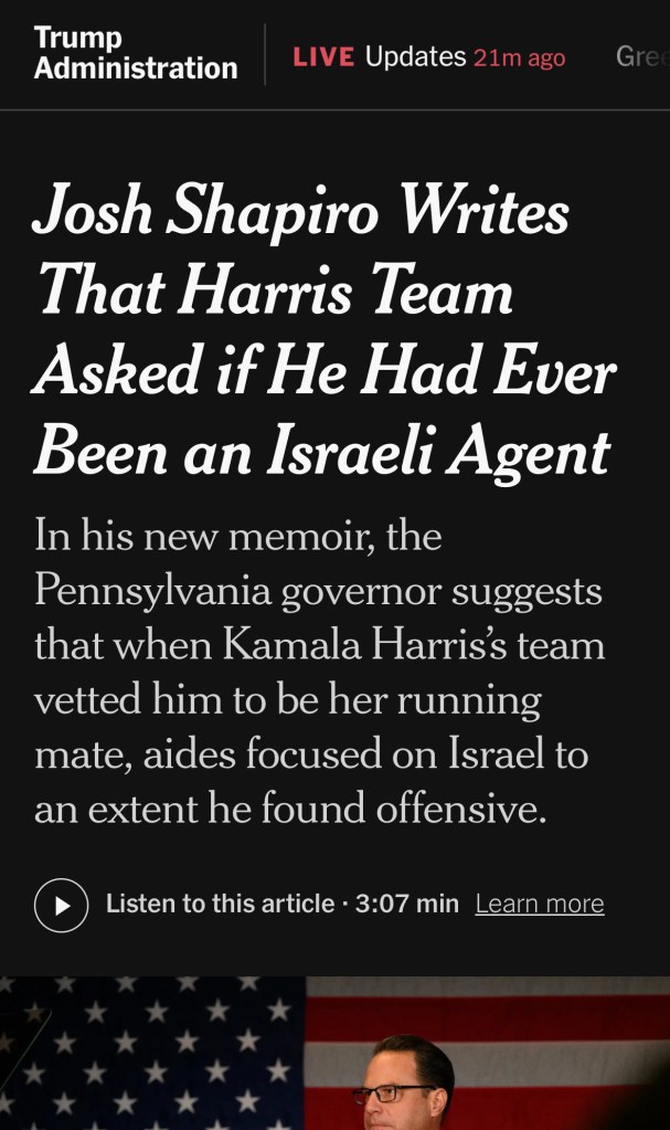 I’ll go on record again- I think Josh Shapiro would have been a horrible pick to be Kamala Harris running mate. If they had selected him, they would have been swallowed whole with questions about Gaza and foreign policy. As with any VP pick, I find it questionable that he would have actually converted over any voters who didn’t vote for Harris, in Pennsylvania or elsewhere. This isn’t really a knock on Shapiro, I think we can say Tim Walz really didn’t add anything positive in the end either, and he was the selection. I find it questionable that J.D. Vance, Kamala Harris, Mike Pence, Joe Biden, or Dick Cheney really moved the needle for their bosses, and they were all winning VP’s. Honestly, the selection is basically an albatross around the nominee’s neck under almost any circumstances, and most of them don’t even carry their home state for the nominee unless they were going to win it anyway. Shapiro would have been the same, which probably makes him no better or worse than anyone else she could have picked. I think Harris was going to eat a shit sandwich no matter what.