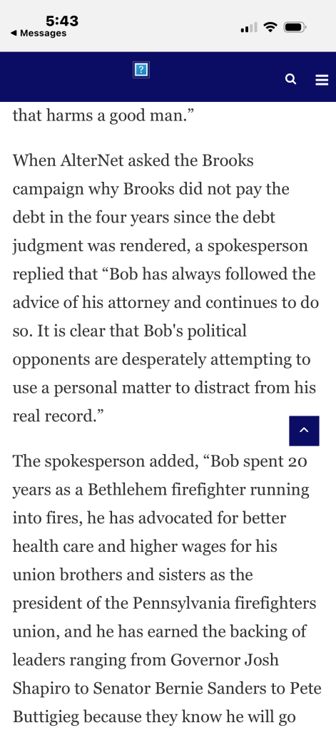 Of course, political reality doesn’t change just because Bernie Sanders or anyone else tells you so. If you run for federal office, anything questionable in your life is coming out. Hell, that’s probably true for any state office too. You can make up any excuses for why they happened that you’d like, but eventually someone writes the article. And next thing you know the article gets legs, and then CNN and the Washington Post start to take notice and write more articles, and then suddenly people are finding out stuff about you that even you didn’t know. You may have done fairly normal things wrong, like screwed up your taxes, got a DUI, or defaulted on a debt, things that don’t really make you a bad person, but nevertheless are troublesome in a campaign. Look, I think people are crazy who subject themselves to the kind of vetting that comes with mid-level political appointments or seats in state legislatures or the U.S. House. It’s truly unfair, frankly. However, when you’re running and telling everyone you’re one thing, and your past says you’re something totally different, well, it’s worth a question or ten. Hypocrisy is a sign of trouble to come. If you need a reminder of how red flags work, go look at Crooksy’s consultants other big Pennsylvania client, John Fetterman, where people ignored the signs. Look at Tulsi Gabbard, who has proven herself to be both Putin and Trump’s favorite stooge, after claiming to be a progressive. The signs don’t go away just because you want them to. People aren’t going to not talk about Crooksy’s problems just because the Governor or anyone else ask them to.