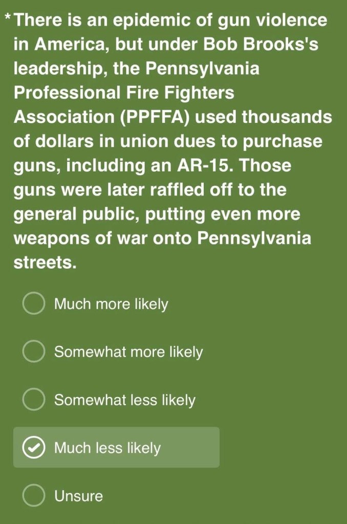 I think we’ve reached the point where we have to ask if Bob “Crooksy” Brooks is really a Democrat at all? I’ve asked this about Ryan Crosswell, and I still have questions, but Crooksy seems more open and shut yet- he’s not. He pretends well because it’s good politics for him, but every unguarded moment where he has shown his values in life, his values are MAGA right-wing. Champion of the “working man?” Sure, the lunatic ones who want war in our streets.